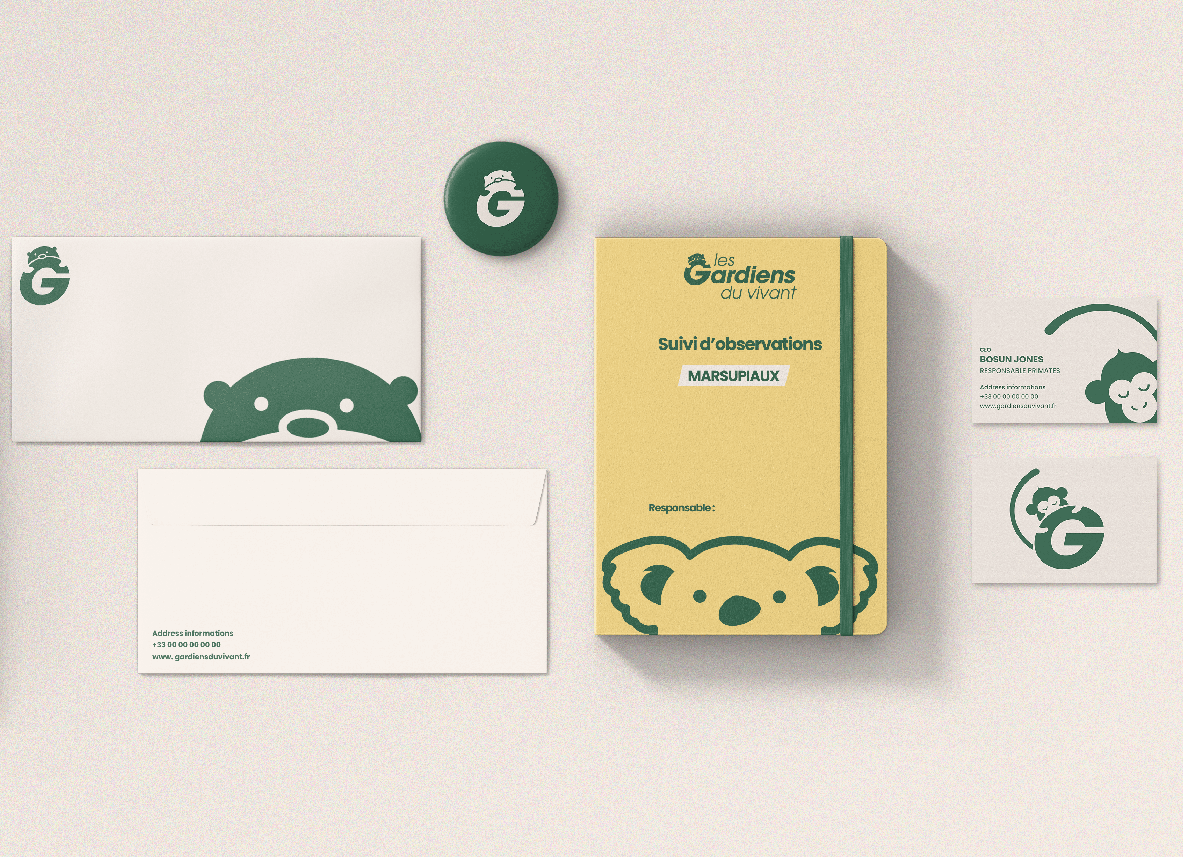 Les Gardiens du Vivant est une association engagée dans la protection de la faune locale. L’identité visuelle a été pensée pour refléter ces valeurs à travers un univers éco-friendly, naturel et bienveillant.