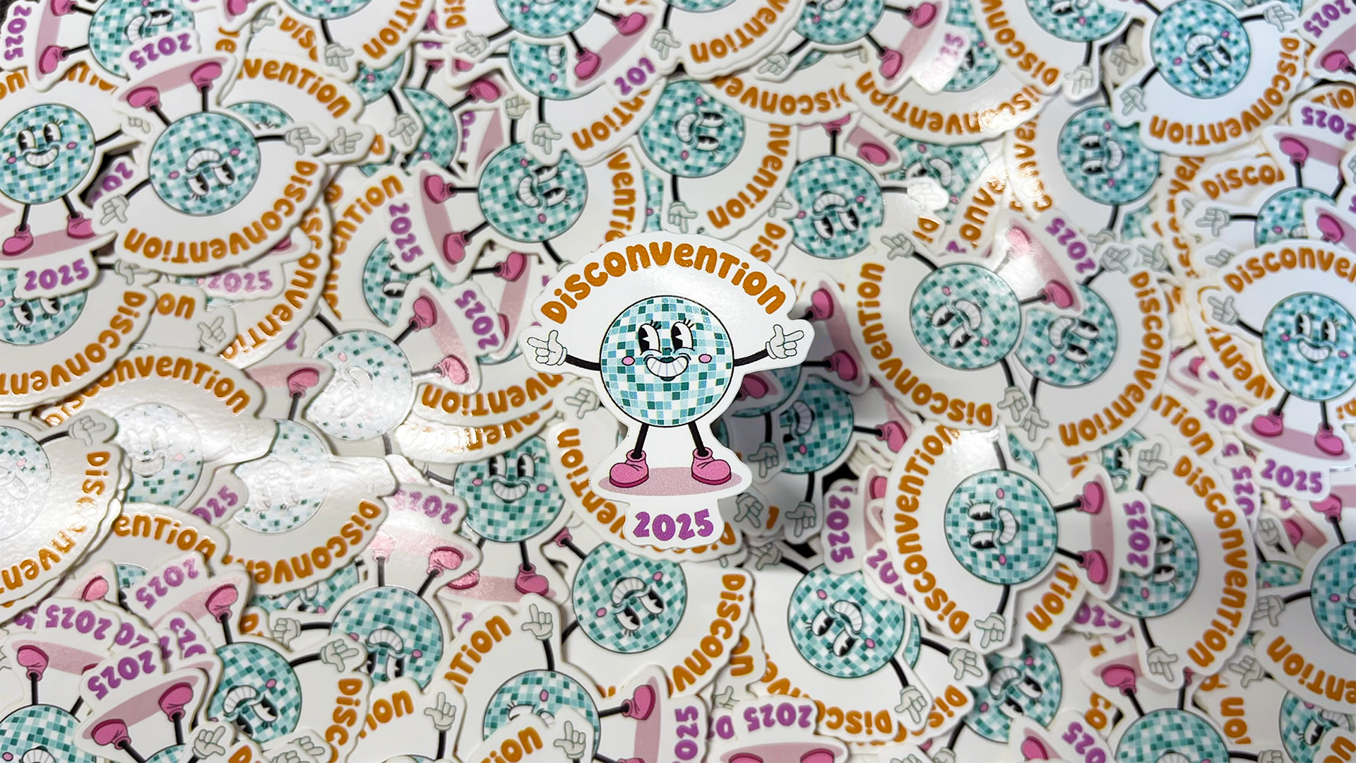 Conception de l'identité visuelle de la Disconvention, événement interne d'une entreprise sur le thème "Disco".
